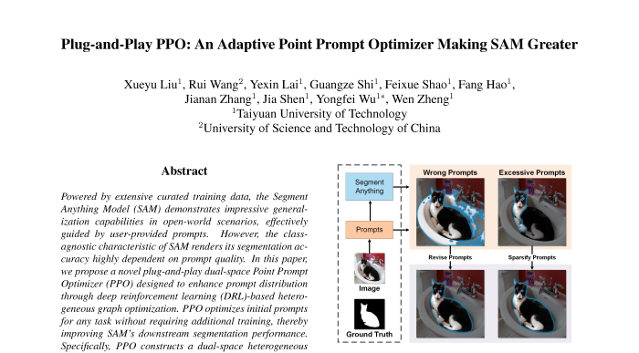近日,我校人工智能学院吴永飞副教授课题组在IEEE/CVF Conference on Computer Vision and Pattern Recognition(CVPR)2025上发表了题为“Plug-and-Play PPO: An Adaptive Point Prompt Optimizer Making SAM Greater”的学术论文。该论文的第一署名单位为国产亚洲精品美女久久久_99久无码中文字幕一本久道_亚洲成AV人影院_亚洲AV影院一区二区三区 狠狠躁夜夜躁人人爽天天不卡_国产激情久久久久影院老熟女_精品性高朝久久久久久久,计算机科学与技术学院(大数据学院)的博士生刘雪宇为论文第一作者,人工智能学院吴永飞副教授为通讯作者。